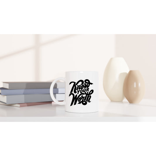 Inspirational "Know Your Worth" White 11oz Ceramic Mug